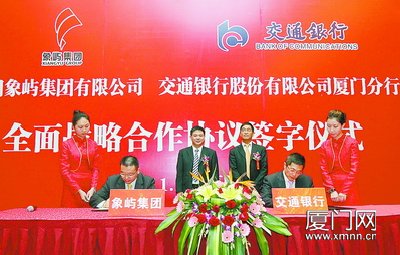 此外,交通銀行將充分發(fā)揮國際化、綜合化的優(yōu)勢,為象嶼集團提供現(xiàn)金管理、投資銀行、供應鏈、信托等“一攬子”金融產(chǎn)品和“一站式”金融服務,全面介入象嶼集團的各項業(yè)務。