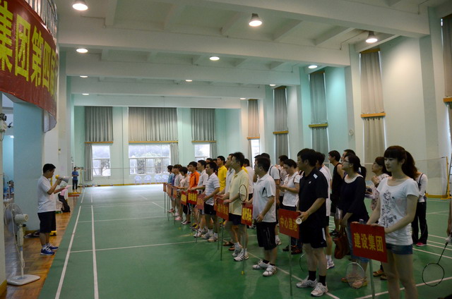 賽場上,運動員們奮力拼搏,后場吊球、近網(wǎng)撲球、扣球跳殺,以高超的球技為觀眾們奉上一場場精彩紛呈的賽事;賽場下,啦啦隊員們歡呼吶喊、掌聲迭起,將比賽現(xiàn)場不斷推向高潮。經(jīng)過近50場的緊張角逐,四項賽事于中午1點全部結(jié)束。建設(shè)集團陳炳忠摘得男單桂冠,配送中心方劍鋒、集團公司傅根海分獲二、三名;男雙的冠軍由速傳物流的吳少塔/胡方獲得,建設(shè)集團的林子房/陳炳忠、資產(chǎn)公司的黃世德/劉偉敏分獲二、三名;集團公司的康慧、胡秋云、羅海燕囊括女單項目前三名;混雙項目前三名由來自集團公司的傅根海/胡秋云、林聰/羅海燕、柯斌偉/康慧包攬。
