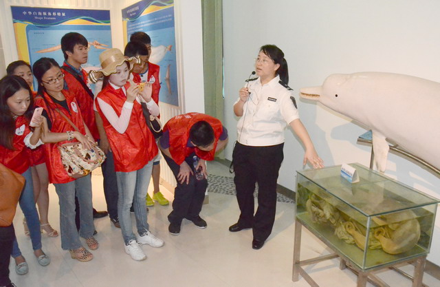 活動中,志愿者們都很激動,紛紛拿出手機和心愛的海豚拍照合影,大家通過喂食和撫觸,與海豚親密互動,真真切切地體會到人與海洋生活和諧共處的那種愉悅和幸福。隨后在科普館內(nèi),海洋漁業(yè)局的講解員為志愿者們詳細介紹了關(guān)于中華白海豚和海洋保護的相關(guān)知識,志愿者們認真傾聽,踴躍提問,與講解員展開了熱烈的互動,收獲良多。