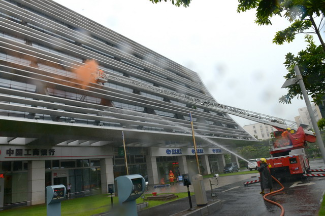 為了提高廈門國際航運(yùn)中心全員的應(yīng)急應(yīng)變能力,以全國第十三個(gè)“安全生產(chǎn)月”為契機(jī),6月19日下午,2014年象嶼保稅區(qū)應(yīng)急綜合聯(lián)動(dòng)演練在此成功舉辦。此次演練由象嶼保稅區(qū)管委會(huì)安監(jiān)局主辦,象嶼集團(tuán)、象嶼高尚物業(yè)承辦,湖里派出所、湖里消防八中隊(duì)、象嶼集團(tuán)員工代表、高尚物業(yè)公司全體員工及航運(yùn)中心租戶代表逾百人參加了此次演練。