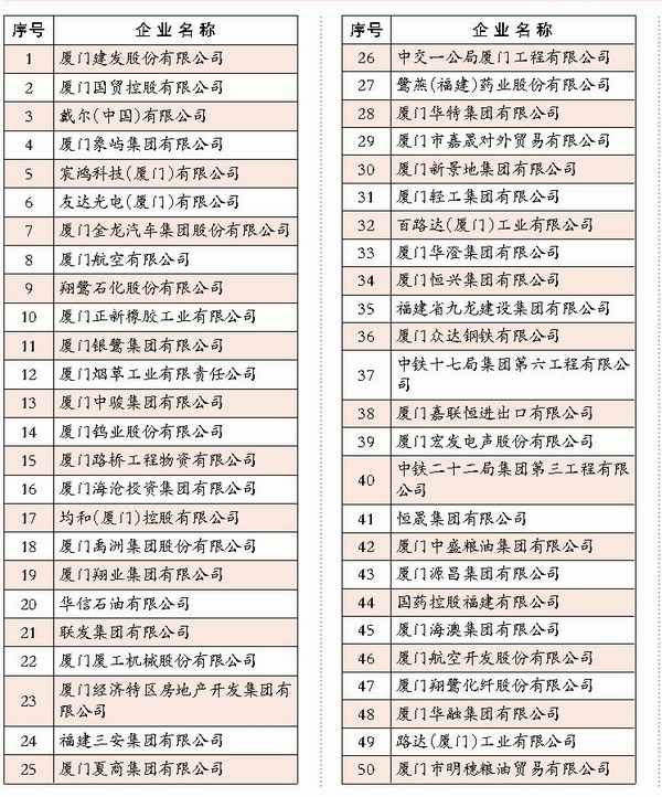 廈門日?qǐng)?bào)《廈企一百?gòu)?qiáng)排行榜揭曉 私營(yíng)企業(yè)占據(jù)半壁江山》