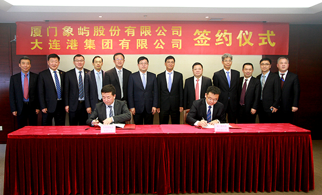 1月7日,大連港集團(tuán)董事長(zhǎng)張乙明一行到訪象嶼集團(tuán),與象嶼集團(tuán)董事長(zhǎng)張水利等就雙方合作展開交流和討論。會(huì)談結(jié)束后舉行了合作簽約儀式,象嶼股份鄧啟東總經(jīng)理與大連港股份魏明暉總經(jīng)理分別代表雙方公司在《戰(zhàn)略合作框架協(xié)議》上簽字。此次戰(zhàn)略合作的簽署,將進(jìn)一步發(fā)揮雙方的產(chǎn)業(yè)優(yōu)勢(shì),鞏固并延伸雙方在港口物流、貿(mào)易、資本層面的深度合作。