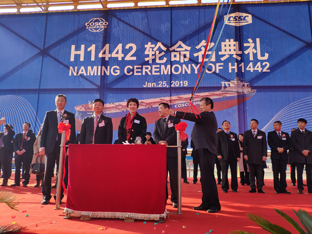 1月25日,揚(yáng)州中遠(yuǎn)海運(yùn)重工有限公司和外高橋造船有限公司聯(lián)合為中遠(yuǎn)海散運(yùn)建造的40萬(wàn)噸礦砂船(VLOC)首制船在上海順利命名交付。象嶼股份黨委委員、象嶼股份副總經(jīng)理肖靜勤代表廈門(mén)象嶼股份有限公司參加了命名交船儀式,擔(dān)任新船教母,為新船命名“遠(yuǎn)津海”并剪彩。