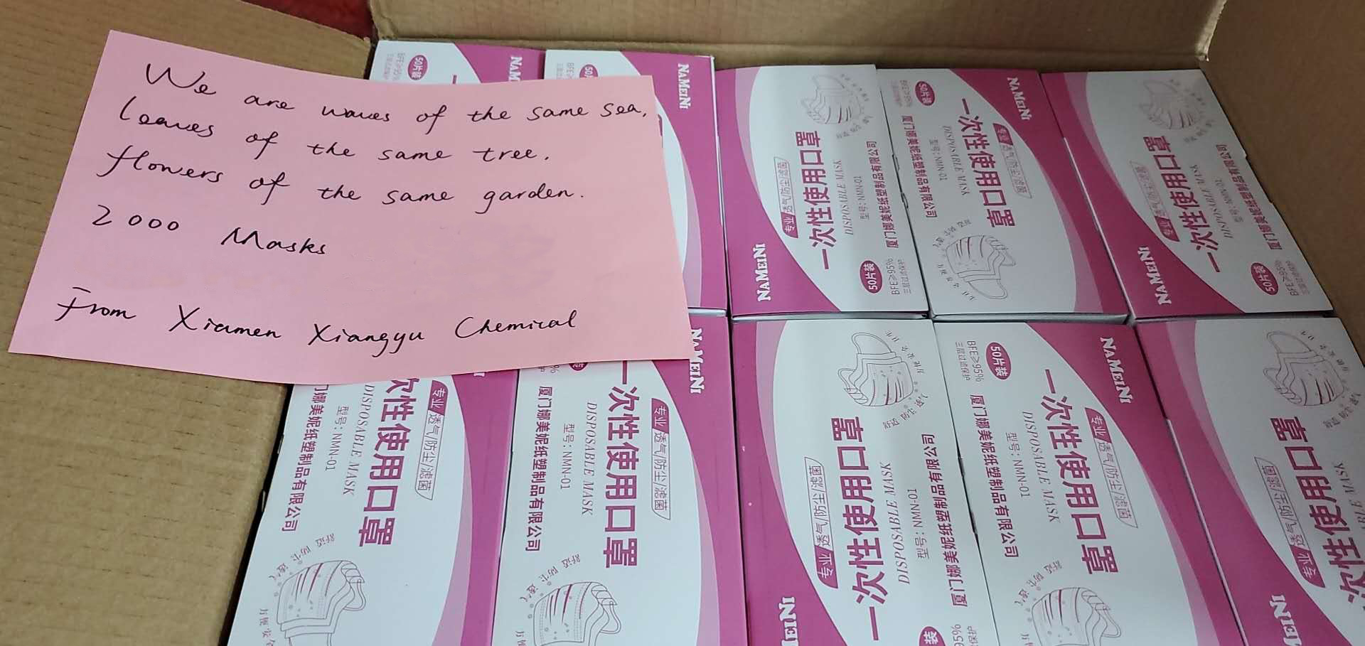 相似的故事同樣也發(fā)生在了象嶼股份旗下企業(yè)象嶼農(nóng)產(chǎn)品公司。打開記憶盒匣,貼著“智利BLUMAR關(guān)心您”暖心字樣的口罩躍然眼前,那是象嶼農(nóng)產(chǎn)品的長期合作伙伴BLUMAR SA公司在智利國內(nèi)口罩存貨不多、購買困難的情況下用心為我司籌措得來的。隨著智利全國進(jìn)入災(zāi)難緊急狀態(tài),智利疫情形勢逐步嚴(yán)峻。滴水之恩,當(dāng)涌泉相報(bào)。在了解到智利老伙伴的處境后,象嶼農(nóng)產(chǎn)品在象嶼勝獅的協(xié)助下,兩個半小時(shí)就完成了10000個口罩的檢驗(yàn)與裝箱工作,于4月10日迅速寄往智利。象嶼化工也早在3月便積極籌措防疫物資,向秘魯和法國友商寄出2500個口罩。