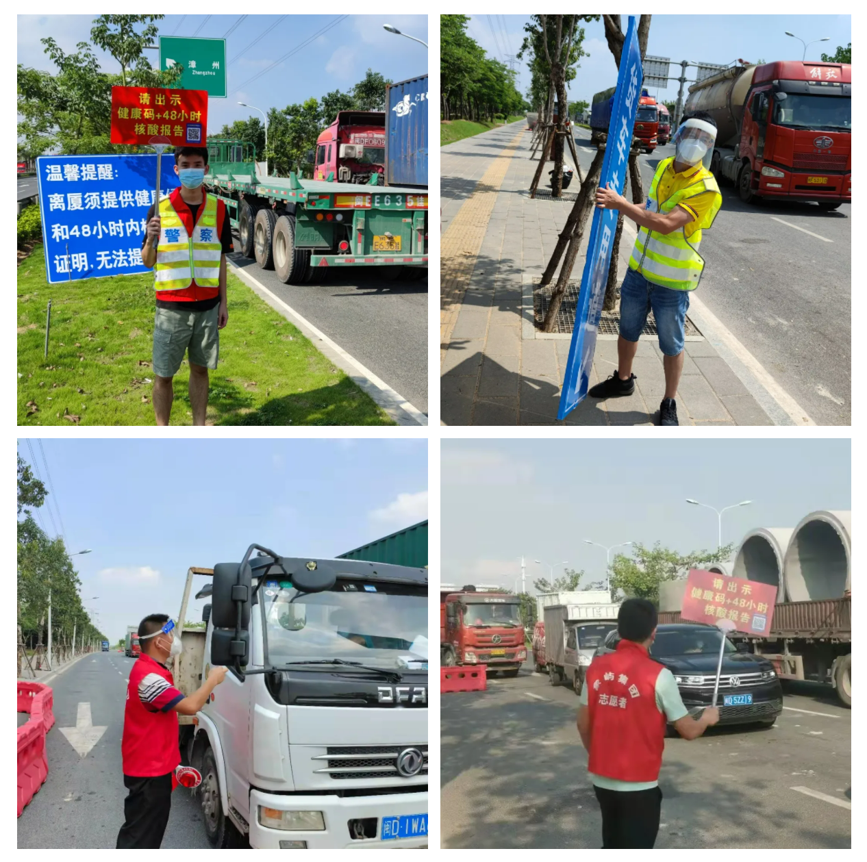 在海滄海翔大道東埔村,遠(yuǎn)遠(yuǎn)就能看到象嶼股份志愿者手持指引牌,“請(qǐng)出示健康碼+48小時(shí)核酸報(bào)告”,他們正在開(kāi)展交通防控協(xié)管工作。他們?cè)诼房谝徽揪褪?小時(shí),凌晨24點(diǎn)到早上8點(diǎn)的夜班更是對(duì)志愿者們體力與毅力的考驗(yàn)。
