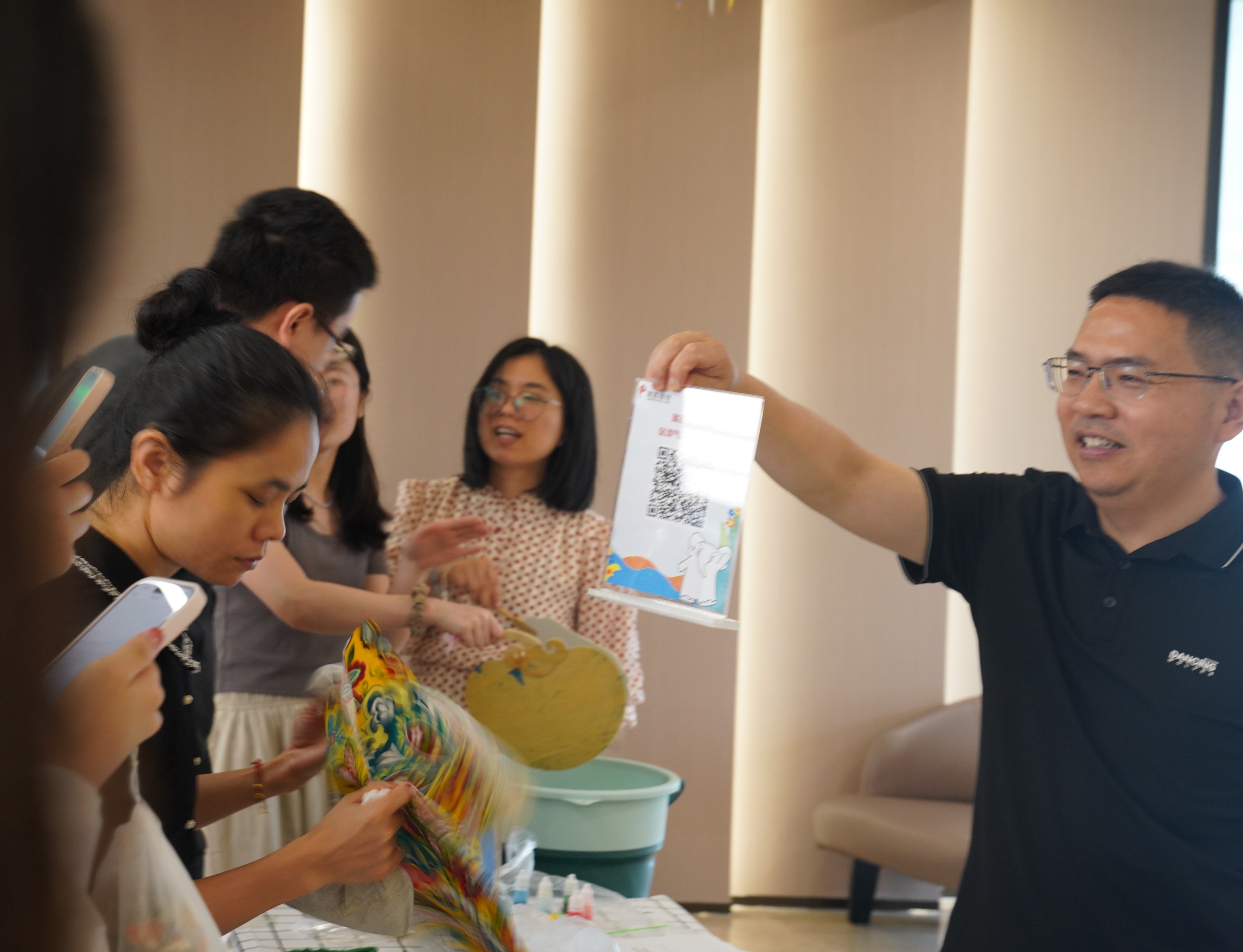 以漆為筆,以水為畫。漆藝,是我國傳統(tǒng)工藝中的瑰寶,已有千年歷史。扇面浸入漆水,水波流轉(zhuǎn)間,呈現(xiàn)出一幅幅斑斕圖案。漆扇更是一種文化符號,在端午漆扇制作活動中,象嶼股份同仁們還將守信理念融入其中,提醒自己在享受美好生活的同時,也要堅守清廉本色,正如扇面上的每一筆都需精細斟酌,在日常經(jīng)濟活動中保持誠信品質(zhì),以實際行動傳承和弘揚優(yōu)良家風(fēng)。